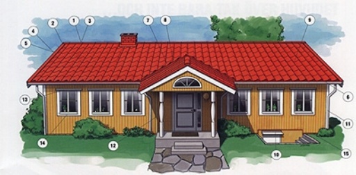 På bilderna ser du exempel på olika standardbeslag. På husbilden ovan finns användningsområden angivna.